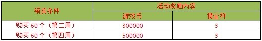 【活动时间】:开服第二周和第四周(注意:第二周与第四周奖励额度不同)