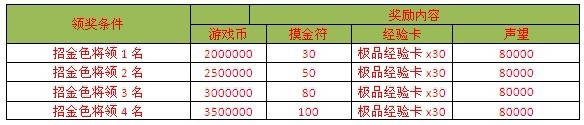 注意哦,以上奖励可叠加领取。举例,招满4个金将时,可以领取以上全部4项奖励。