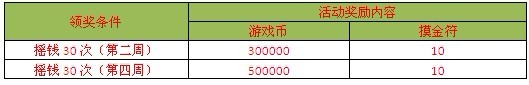 【活动内容】:活动时间内,每日摇钱满30次即可领取丰富奖励一份。(每天领奖一次。)