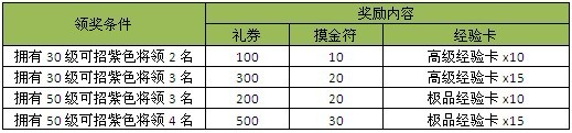 【活动内容】:活动时间内招募紫色武将满足以下条件即可获得相应的礼包奖励!