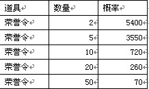 荣誉礼包:打开可获得荣誉令x300个(1个荣誉令=1000荣誉值)