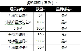 活动期间,每单笔充值5000-5999元宝能够获得【温馨礼包(蓝色)】*5