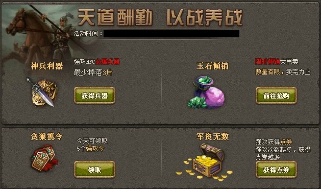 活动当日5:00点开始,只要玩家强攻至一定金币,即可获得点券大礼。