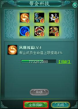 四、帮派科技人人爱,突破境界金丹不能少,每天打怪获得的大量灵珠如何处理,自然是捐献帮派,但是六种灵珠,一次次的捐献自然是很悲剧的选择。VIP,一键捐献轻松搞定,你能不喜欢?