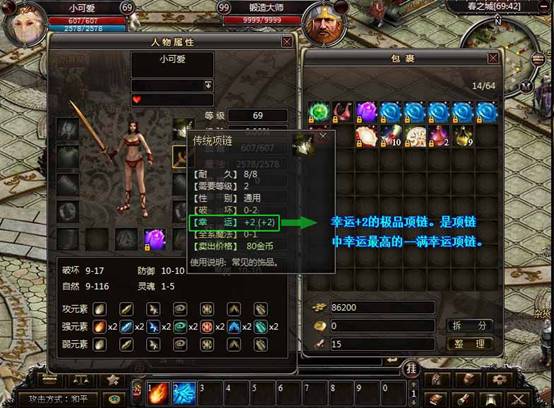 11. 幸运+2的极品项链:(只有极品几率爆出的项链才可能具有天生幸运值)
