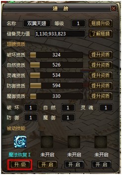 五、如何提升双翼天翅技能等级