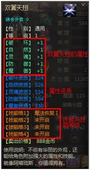 鼠标点击翅膀信息打开翅膀详细属性界面