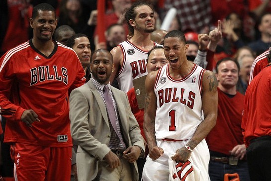 NBA常规赛MVP显然满足不了罗斯,作为新生代中最可能成为乔丹接班人的人,罗斯觊觎的是总冠军戒指,抑或是要重现当年公牛王朝六冠王的盛世辉煌,而今年公牛的阵容亦确实让人看到了复兴的希望。诺阿、邓、布泽尔、吉布森等等球员组成的公牛阵容,在攻守两端都是联盟中顶尖的标准,而正是依靠这些球员,公牛在季后赛击败步行者、老鹰,在第三轮面对三巨头的热火第一场也以103:82的大比分击败对手。