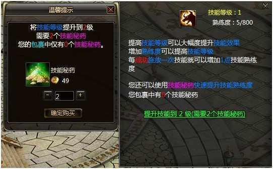 点击上图中的“技能提升到2级(需要2个技能秘药)”即可直接提升到2级。