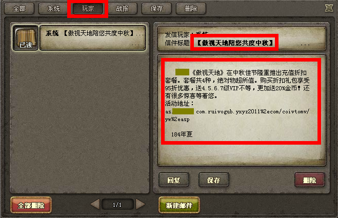 注:正确的系统邮件中不会包含网站地址,而是引导玩家本人进入陪游傲视天地唯一官网进行查看,请玩家注意分辨!