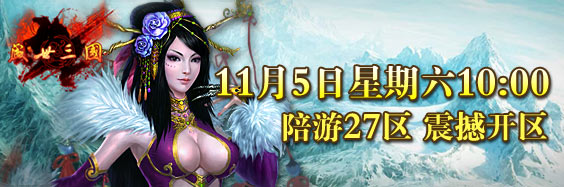 陪游《盛世三国》27区将于11月5日上午10:00震撼开启,与此同时,我们还为各位玩家准备了丰富的活动和好礼,助英雄们驰骋沙场!