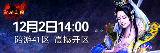 陪游《盛世三国》41区将于12月2日下午14:00震撼开启,与此同时,我们还为各位玩家准备了丰富的活动和好礼,助英雄们驰骋沙场!