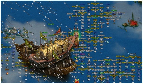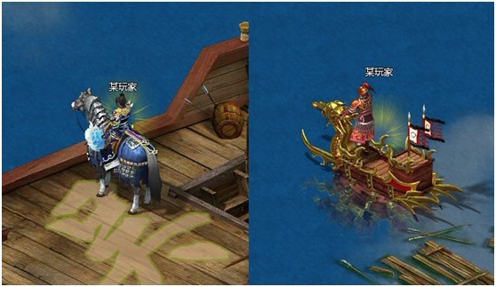玩家可在陆地、战船和水域上自由行走,当玩家移动至水域时角色自动变为小型战船;