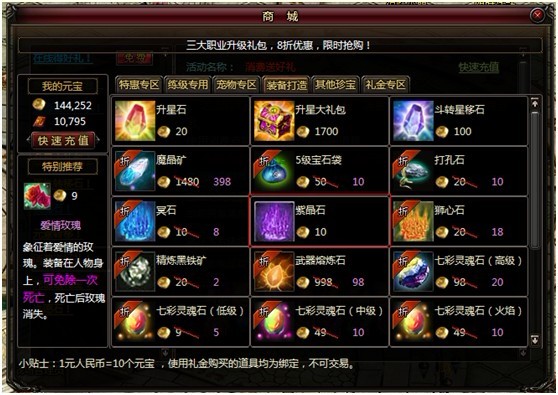 商城新增紫晶石。玩家可以用于转换宝石属性。